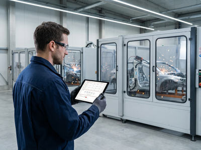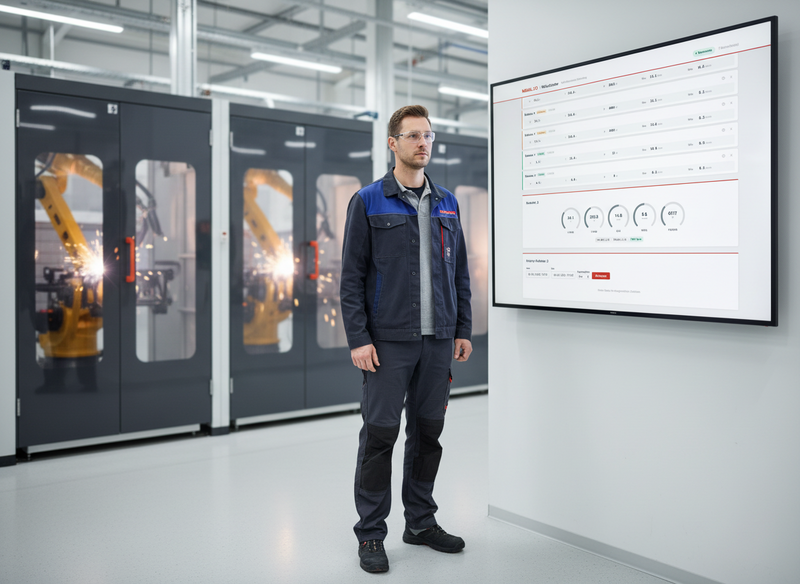 Ob eine einzelne Schweisszelle oder ein ganzer Fertigungsbereich mit Dutzenden Anlagen: RoboCenter erkennt neue Sensorboxen automatisch und zeigt den aktuellen Betriebszustand sofort im Browser an. Ohne Installation, ohne zusaetzliche Software.