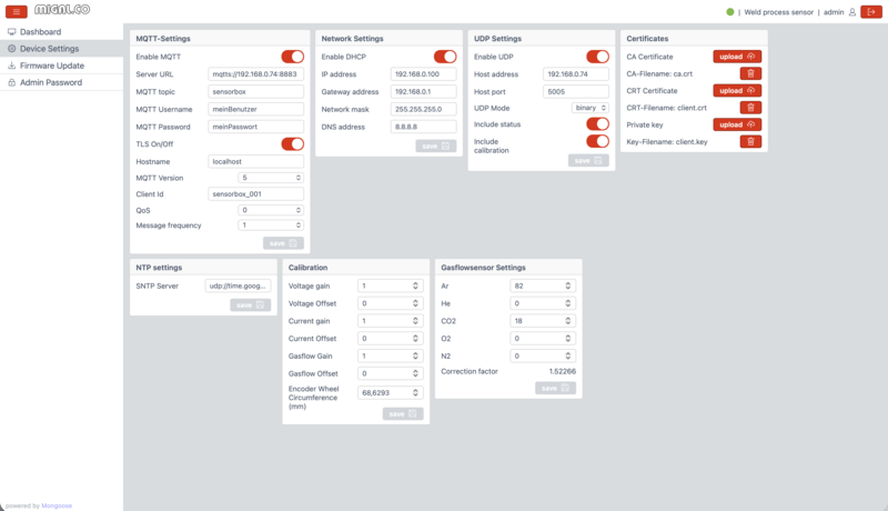 - NTP-Synchronisation für vergleichbare Zeitstempel über mehrere Sensorboxen/Schweißplätze hinweg