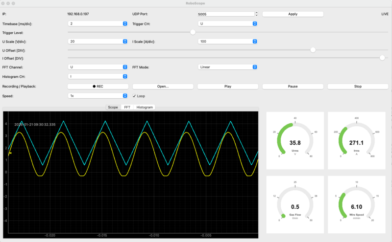 RoboScope ist die passende PC-Software zur MIGAL.CO Sensorbox und steht für Windows und macOS zur Verfügung. Sie dient zur Live-Visualisierung, Analyse, Aufzeichnung und Diagnose der erfassten Schweißprozessdaten – ideal für Inbetriebnahme, Prozessoptimierung und Fehlersuche direkt am Arbeitsplatz oder im Labor.