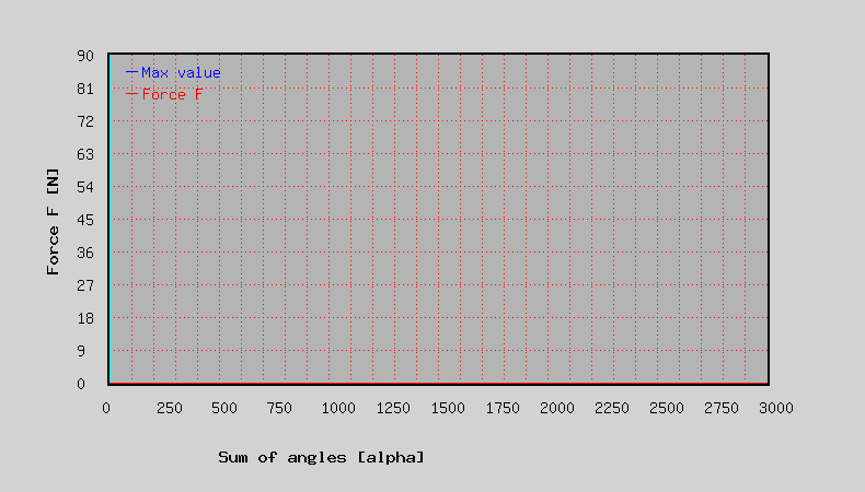 Det är den dragkraft som krävs av matarmotorn som beräknas. Du kan ange ett maximalt tillåtet värde (till exempel 30 N). Värdena visas också grafiskt i diagrammet.